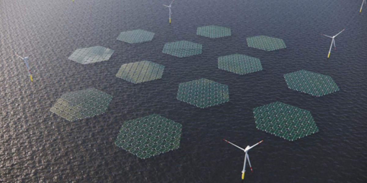 Этот потенциал вызвал значительный интерес к многочисленным ветряным электростанциям в Северном море, которые предлагают идеальные условия для разработки морских плавучих фотоэлектрических установок.