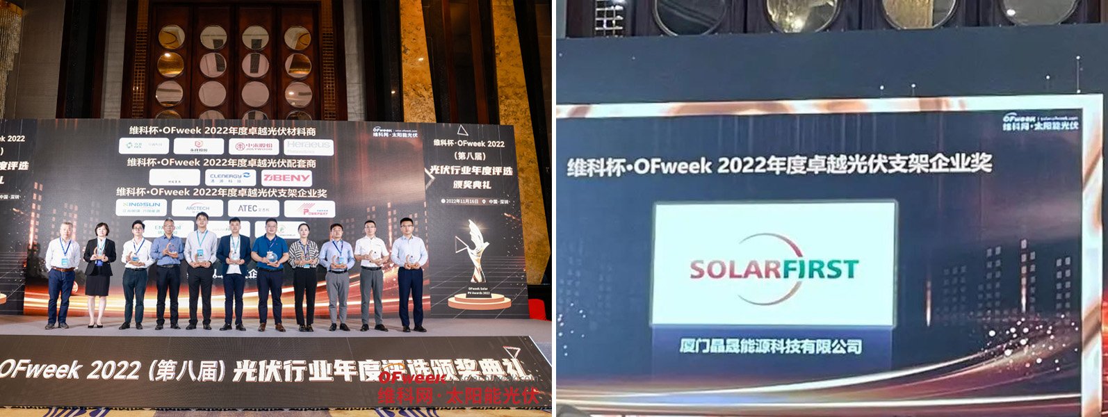Компания Xiamen Solar First Energy обладает более чем десятилетним профессиональным опытом в области фотоэлектрических решений. В этот раз она с абсолютным преимуществом завоевала награду «Vicko Cup ·OFweek 2022 Outstanding Photovoltaic Bracket Enterprise».
