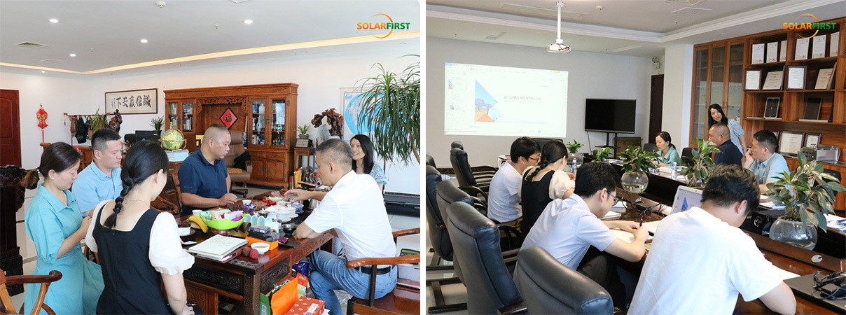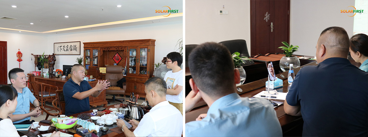 21 июля 2022 года руководство компании Xinyi Glass Engineering (Dongguan) Co., Ltd. («Xinyi Glass») посетило Solar First Group. В состав делегации вошли вице-президент Ляо Цзянхун, заместитель генерального директора Ли Цзысюань и менеджер по продажам Чжоу Чжэнхуа. Президент Solar First Group Е Сунпин и управляющий директор Чжоу Пин приняли их, чтобы обсудить совместную поддержку исследований и разработок в области интегрированных фотоэлектрических систем для зданий (BIPV).
