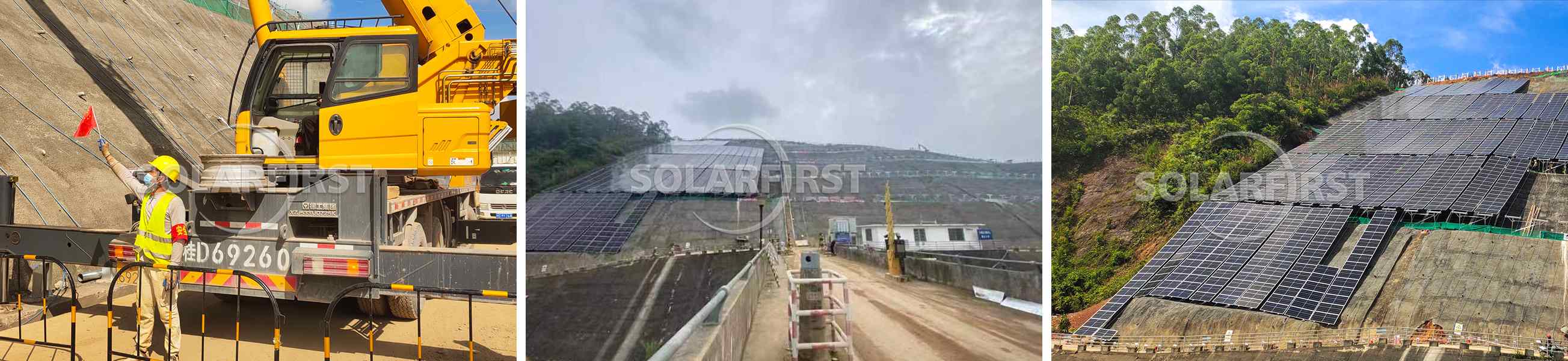 Проект реализуется на южном склоне гидроэлектростанции в городе Учжоу, провинция Гуанси. Рельеф местности здесь сложный, с крутыми (35-45 градусов) и неровными склонами, что создает значительные трудности и проблемы при позиционировании, измерениях, строительстве и монтаже, а также при безопасной эксплуатации. После многочисленных исследований на месте, обсуждения проекта, проектирования и проверки техническая группа Solar First Group предложила научно обоснованное, строгое и эффективное решение по гибкой подвесной кабельной опоре, учитывающее местные условия и обеспечивающее максимально эффективное использование неиспользуемых горных участков. Этот проект получил высокую оценку заказчика с точки зрения технического решения, безопасности строительства и эффективности.