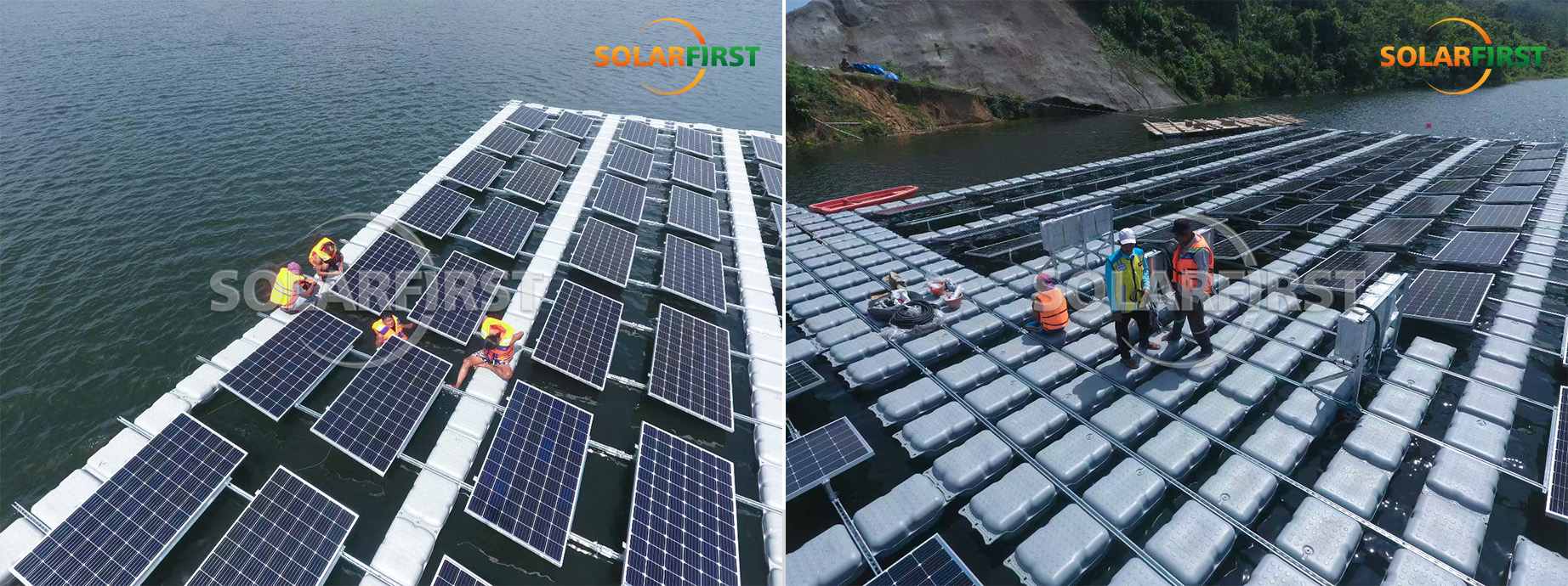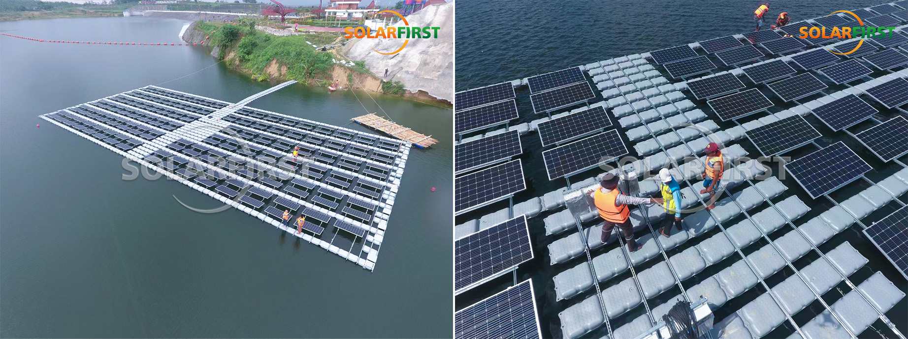 Первый проект плавучих опор Solar First Group в Индонезии близок к успеху. Этот проект представляет собой плавучий фотоэлектрический проект индонезийского правительства, завершение которого запланировано на ноябрь 2022 года (проектные работы начались 25 апреля). В проекте используется новая система плавучих кронштейнов SF-TGW03, самостоятельно разработанная и спроектированная Solar First Group.