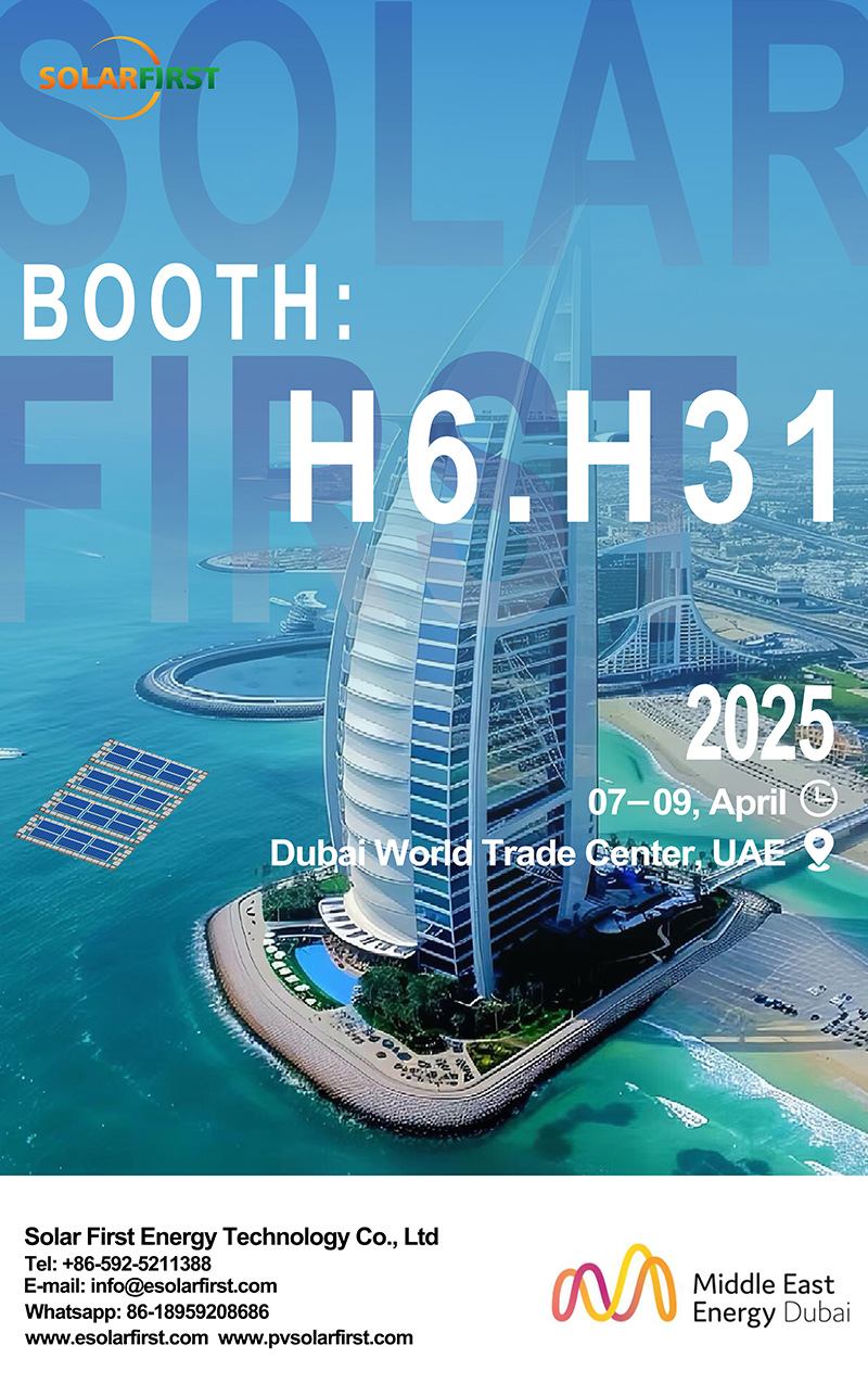 Компания Solar First Energy Technology Co., Ltd. приглашает отраслевых партнёров познакомиться с передовыми технологиями возобновляемой энергетики на выставке Middle East Energy 2025 (7–9 апреля, Всемирный торговый центр Дубая). Посетите наш стенд H6.H31, чтобы обсудить достижения в области устойчивой энергетики.