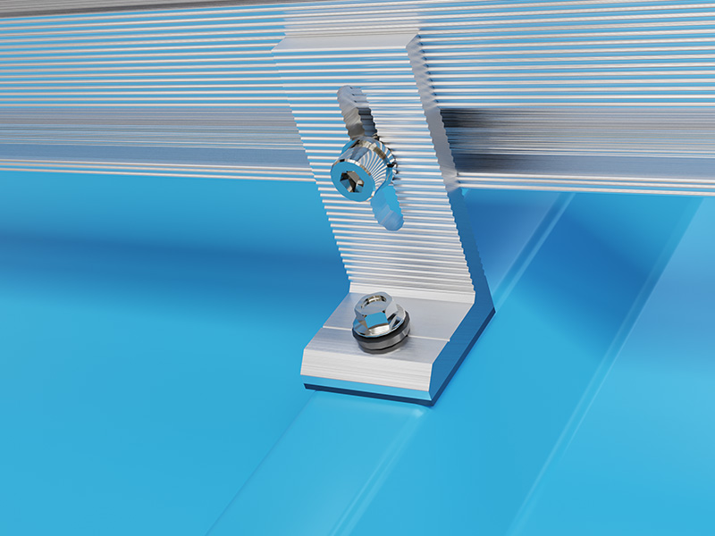 Крепление для солнечных панелей на крышу SF с L-образной опорой представляет собой простое и эффективное решение для монтажа на металлических крышах трапециевидной формы, отличающееся логичной и быстрой последовательностью установки.
