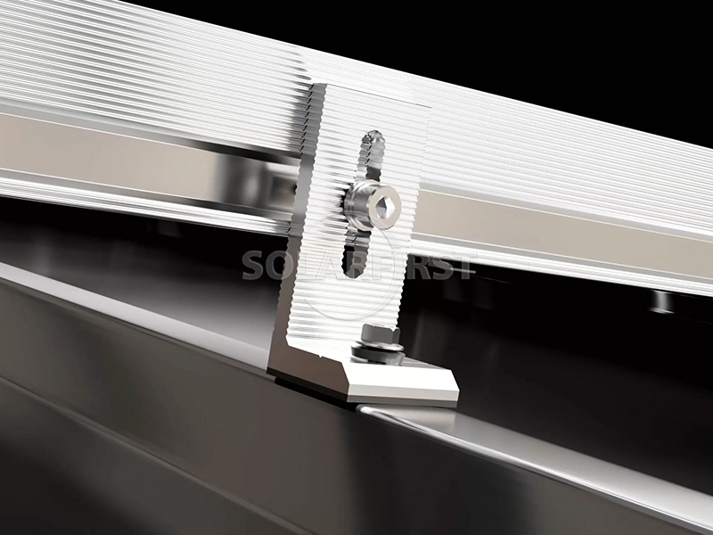 Процесс установки начинается с разметки и сверления отверстий, после чего крепится комплект L-образных опор саморезами. Затем направляющие фиксируются и соединяются специальными соединителями, создавая непрерывную опорную конструкцию. Фотоэлектрические модули устанавливаются на собранные направляющие и надежно фиксируются с помощью предварительно собранных концевых и средних зажимов. Этот понятный пошаговый процесс обеспечивает быстрое развертывание и снижение трудозатрат.