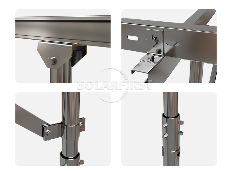 Система, разработанная с учётом универсальности и экономичности, использует оптимизированные стальные профили, такие как C-образное и U-образное сечение, что снижает затраты на материалы и рабочую силу, а также упрощает монтаж. Это решение обеспечивает эффективное и долговечное решение для наземного монтажа солнечных панелей, будь то в мегаваттных солнечных электростанциях или коммерческих проектах.